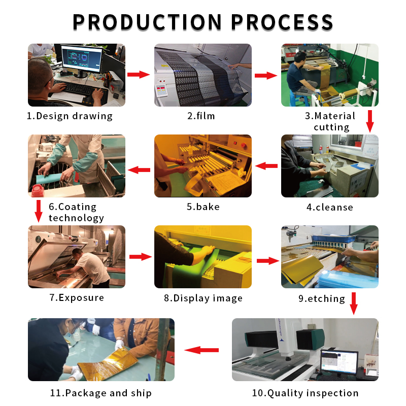 Langkah pertama untuk menentukan material, stainless steel adalah salah satu bahan yang umum digunakan, karena ketahanan dan kekuatan korosi yang baik, cocok untuk produksi tutup tanduk mobil. Saat membuat penutup net tanduk mobil, substrat logam perlu dibersihkan terlebih dahulu untuk menghilangkan minyak dan kotoran di permukaan dan memastikan kualitas proses selanjutnya. Langkah selanjutnya adalah menerapkan tinta fotosensitif, setelah substrat dibersihkan, lapisan tinta fotosensitif perlu diterapkan secara merata pada permukaan logam, yang akan mengeras selama proses paparan untuk membentuk lapisan pelindung. Langkah selanjutnya adalah paparan, di mana film yang dirancang ditempatkan di kedua sisi logam yang dilapisi dengan tinta fotosensitif, dan diekspos oleh sinar ultraviolet, sehingga pola pada film ditransfer ke permukaan logam. Setelah paparan, pelat logam dikembangkan dan tinta fotosensitif yang tidak dihilangkan dilepas, memperlihatkan bagian logam yang mendasarinya dan menyiapkannya untuk etsa.